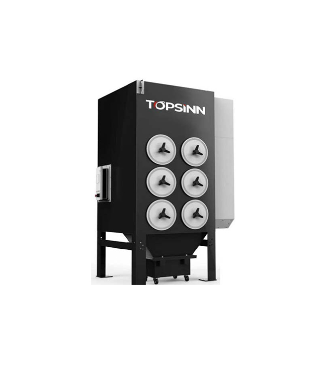 • TOPSINN TODC-6L – промышленная фильтрационная установка с четырьмя картриджами, которая используется для очистки воздуха от вредного дыма и пыли, образующихся при лазерной маркировке, гравировке, резке и сварке;